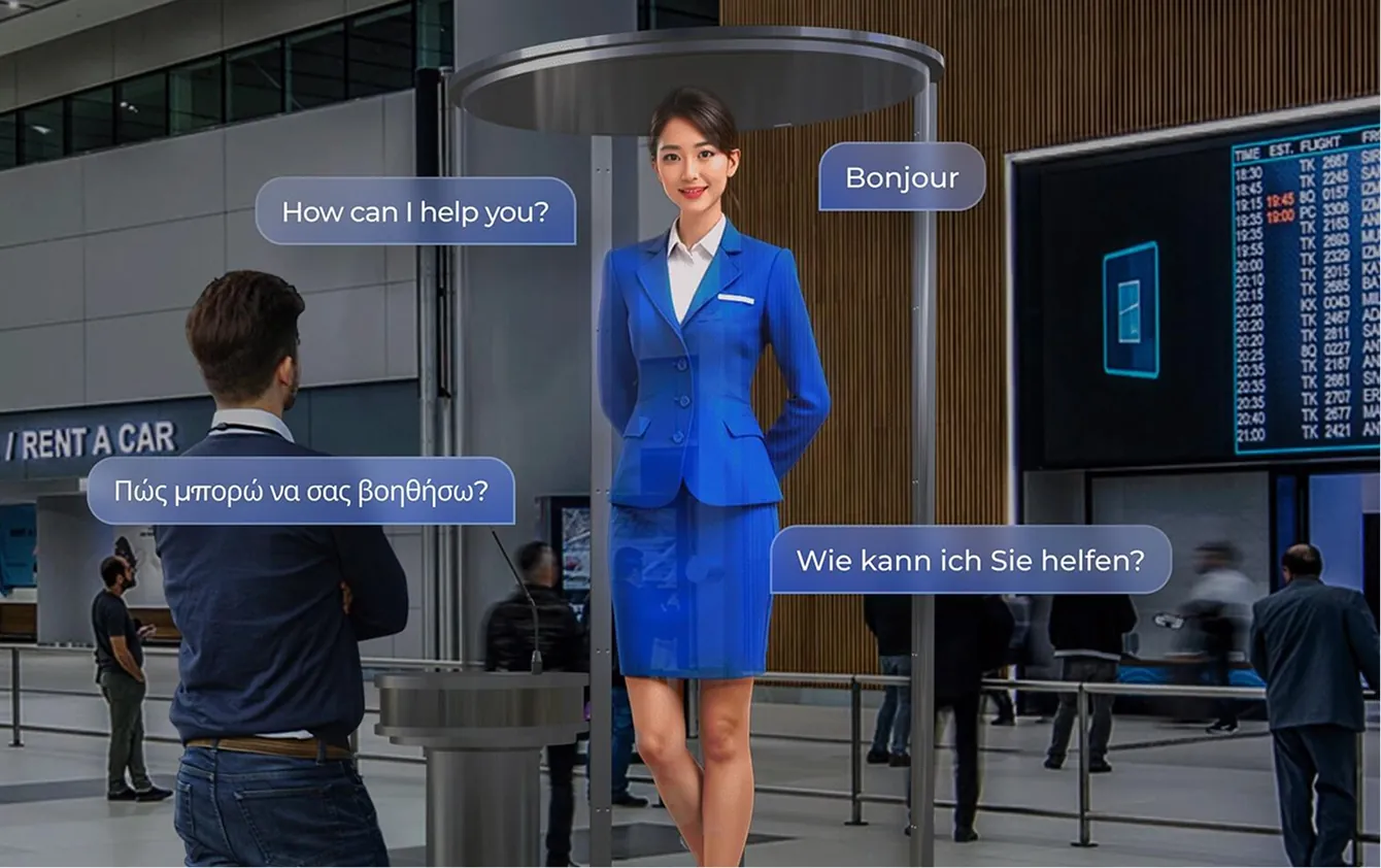 Upgrade the visitor experience with Digital Avatar, an AI-powered 3D holographic assistant. It welcomes visitors, shares information and answers questions 24/7, with messaging tailored to your brand voice.